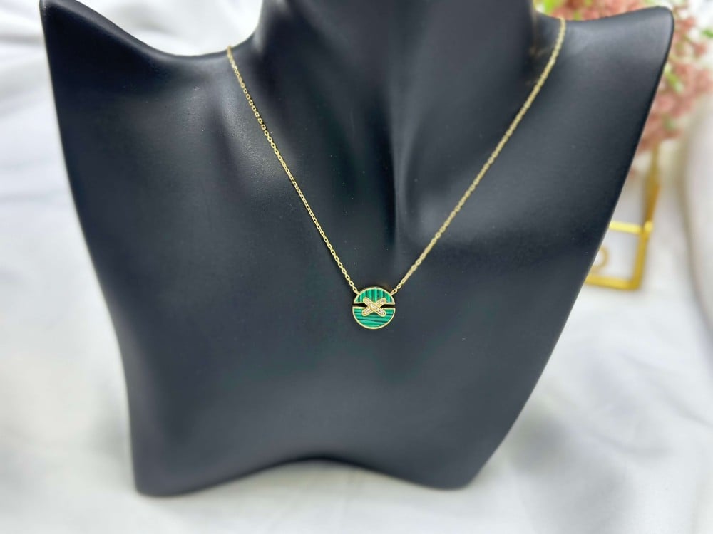 - وصف المنتج: عقد شوميه اللون الأخضر تصميم إيطالي ناعم جميل وأنيق من فرائد مجوهرات قصر الذهب.