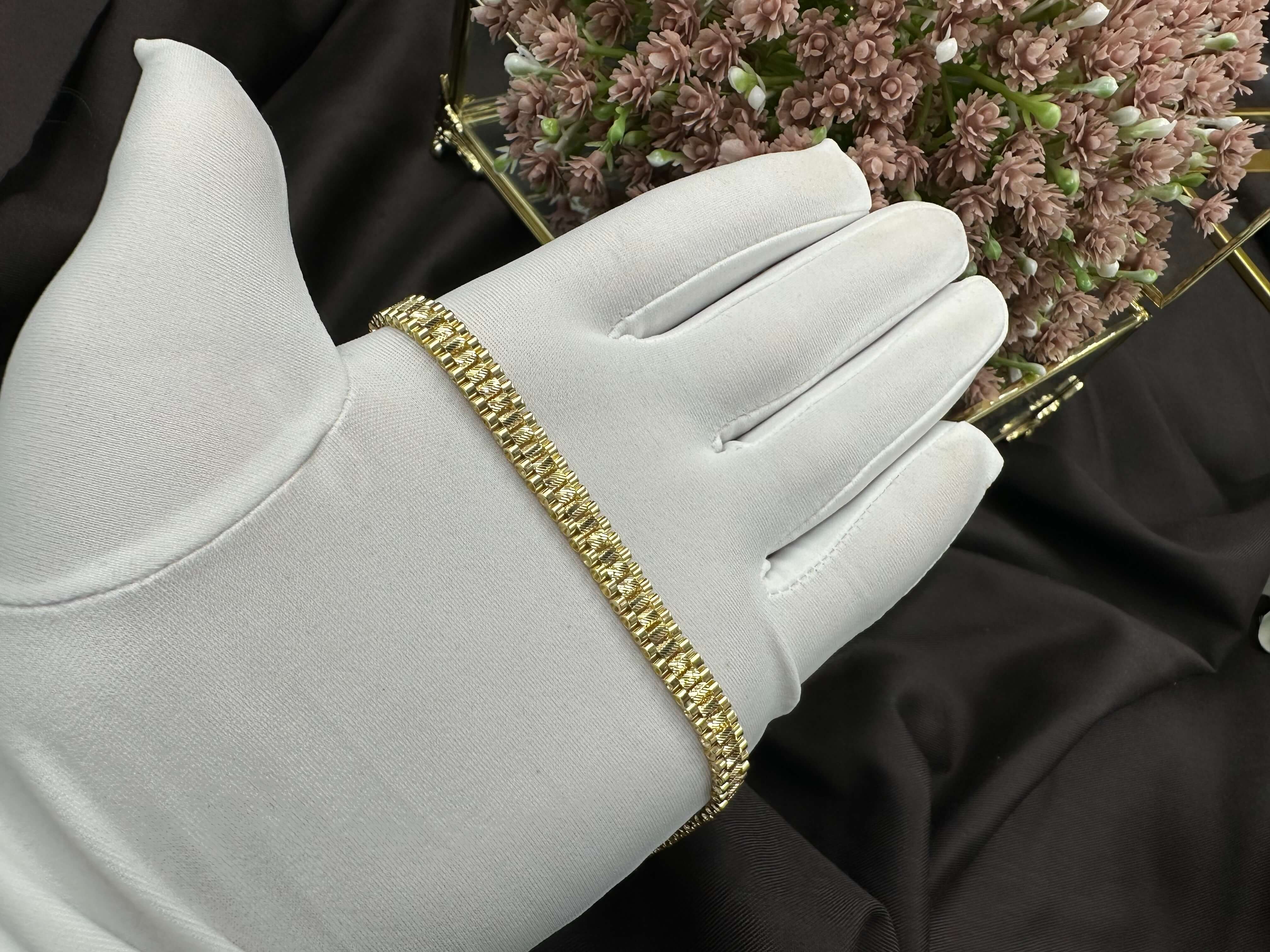 • وصف المنتج: سوارة رولكس الإيطالية ذهب صافي من غير فصوص مميزة تجمع بين النعومة والأناقة من فرائد مجوهرات قصر الذهب.