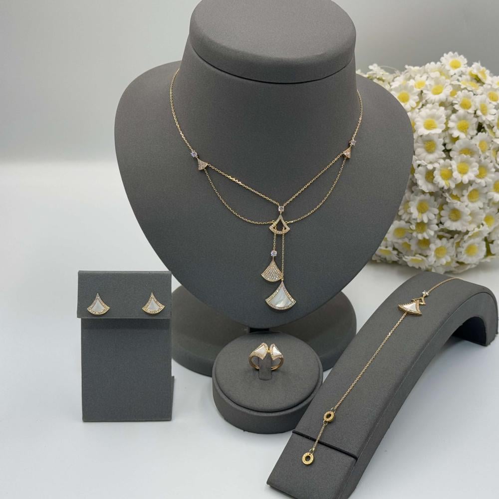 طقم بولغاري عيار 18 ناعم ومميز يجمع ما بين النعومة والأناقة من فرائد مجوهرات قصر الذهب.